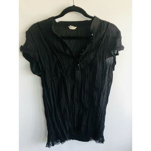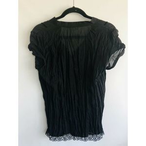 Studio Y Short Sleeve Blouse Black Chiffon Size L