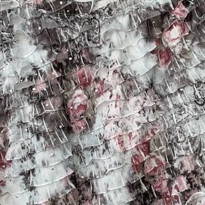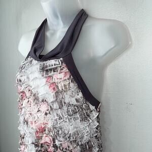 Studio Y sleeveless white, pink, and gray floral embellished tiered ruffle top in Excellent pre-owned condition!