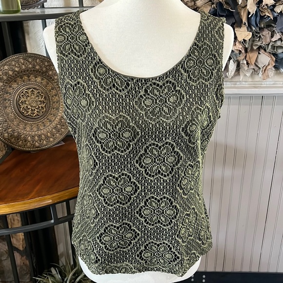 Studio Y Top Green Floral Lace Lining Stretch Approx Armpit to armpit 18.5” Length 22”