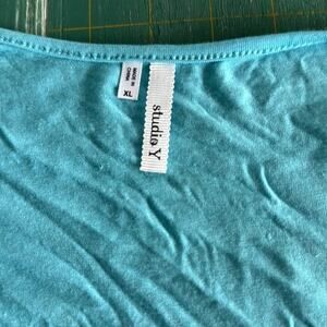 Studio Y Vintage Babydoll Y2K Women's Blue V-Neck Pullover Top Beaded sz XL