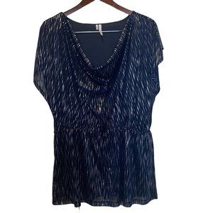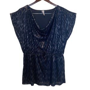 Studio Y Women's Dark Blue Silver Sleeveless Top With Cowl Neckline Size XL NWOT