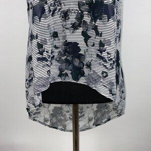 Studio Y Womens L Sheer Floral Striped Hi-Lo Hem Tunic Blouse Top Keyhole Back