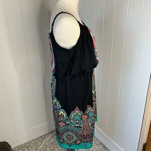 Studio Y Womens Size Large Mini Sundress Black Turquoise Print Adjustable Straps