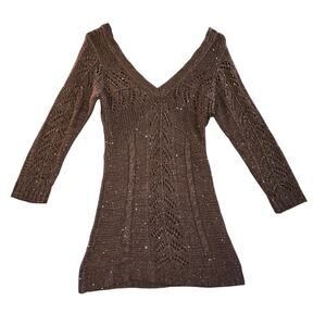 Studio Y2K Style Sequin Tan Pullover V-Neck Sweater Size M