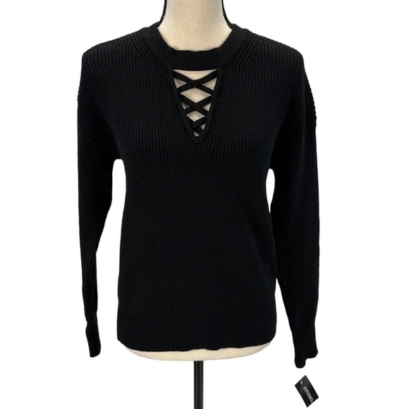 Studio by JPR Long Sleeve Crew Neck Lace Peephole Ribbed Sweater - Black - Small