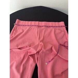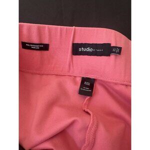 The Studio by Torrid Pixie Women's Pull-On Knit Stretch Pants in 3X size are perfect for casual and comfortable wear. Made with a blend of rayon, nylon, and spandex, these wide-leg pants feature tummy control mesh panels and an elastic waist for a flattering fit. The peach pink color and solid pattern make them versatile for all seasons, while the pull-on closure and machine washable fabric make them easy to wear and care for. With a regular fit and plus size design, these pants are both stylish and practical for everyday use.