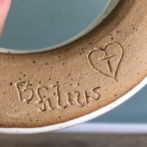 Studio pottery circular hanging donut vase. Hand painted. Signed. Floral pink