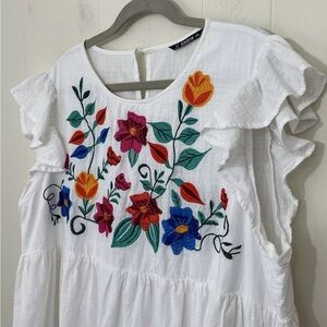 Studio west White Floral Embroidered Short Sleeve Knee Length Dress ~ Size L excellent condition