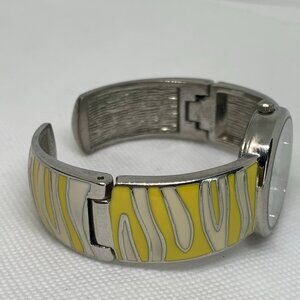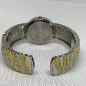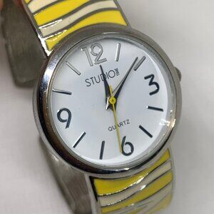 Studio women wrist watch 29mm silver yellow tone quartz analog cuff bangle bracelet size 7”, in good condition battery installed