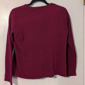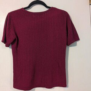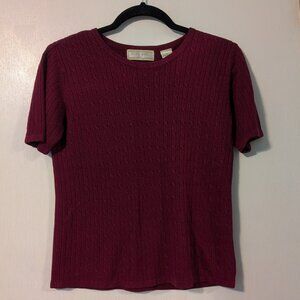 Burgundy short sleeve sweater with button up long sleeve sweater. 100% Acrylic. Petite small.