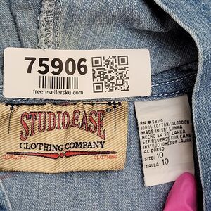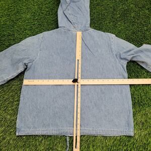 Stay stylish with this Studio Ease denim hoodie in Women's Medium. Faded blue with a boxy fit, perfect for fans of retro and vintage fashion!