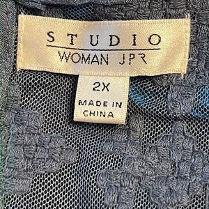Studio JPR Dusty Blue Lace & Crinkled Crepe Dress - Size 2X