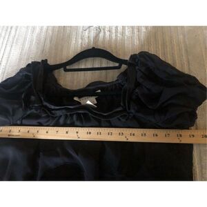 Studio M short, puffed sleeves and a ruffled neckline black evening dress 100% silk size large