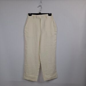 Ivory color, size 4. Zipper fly front with tab closure. Front slash pockets, back has welt pockets with button. Measures 26" waist, inseam is 24". Cuffed bottom. Gorgeous for spring and summer!
