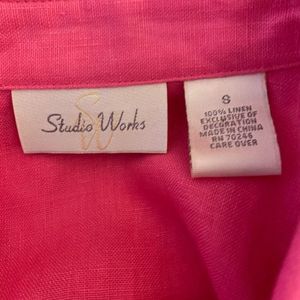NWT Studio Works linen blouse top, hot pink, detailed embroidered & beaded on the bottom, very well made, kind of retro vibes, would be great for beach cover up. Really nice! Oversized