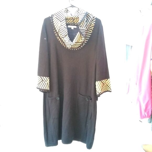 Black and gold sweater dress with front buttoned pockets. NWT. K