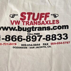 Stuff Volkswagen VW Transaxles California Store Shirt Size Large 20x27 Bugtrans - white T