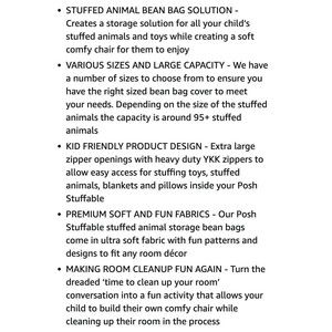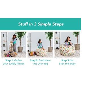 Stuffed Animal Storage Bean Bag Chair Cover Kids Bedroom Toy Organizer