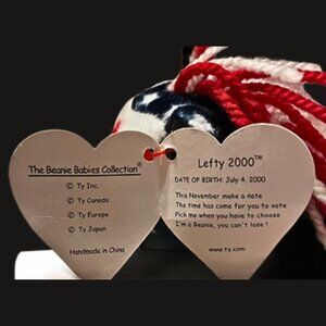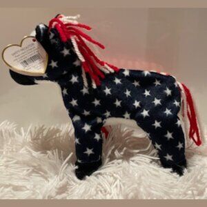 Stuffed Patriotic Plush Donkey Ty Beanie Baby - Lefty 2000 Stars & Stripes