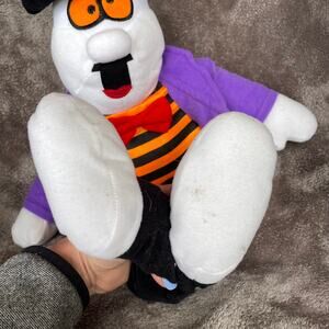 Stuffins Style Ghost Plush Halloween Orange Scrambled Eyes Striped Doll READ