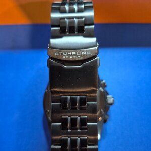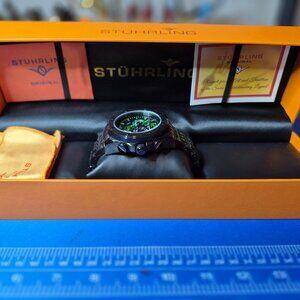 Stuhrling Original Nautilus Chronograph watch. 50mm black case with matching bracelet. Black dial with green highlights. Excellent condition, comes with original box and papers. GB11