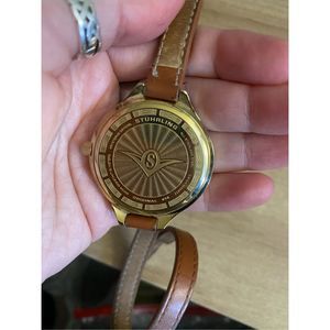 Stuhrling Soiree Deauville 23K Gold Fused SS Sport Watch, Leather Wrap Band