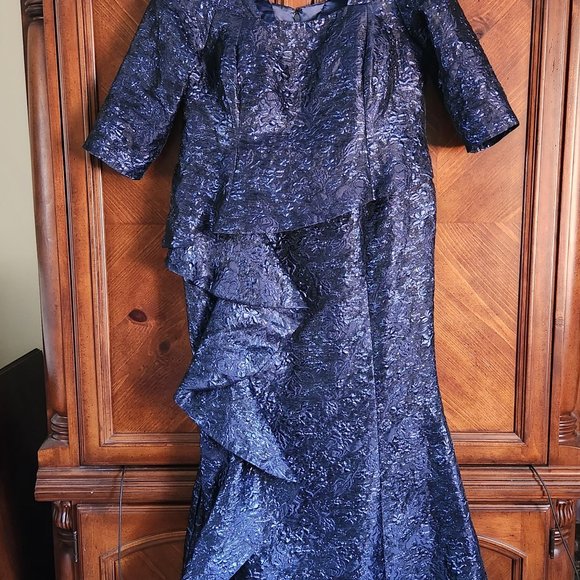 Stunning MOG gown. Textured light weight Navy Metallic and Matte Material. Worn 1x.