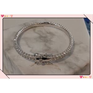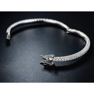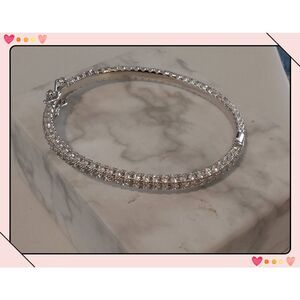 Stunning 18KWGP Genuine Pave Diamond Simulant Bangle Bracelet