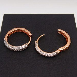 Stunning 18k. Rose Gold Over Sterling Silver 25mm Round Hoop Earrings With CZ's