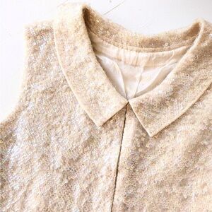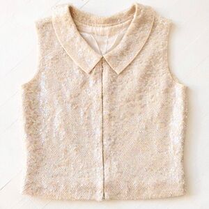 This gorgeous 1960s knit is perfect for the upcoming holiday season! Covered in iridescent sequins, this top has a fold over collar and is made from 100% fine knit wool.