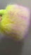 One of a kind. This stunning fluffy real fur bag, handmade from dyed genuine premium Finn Raccoon fur with real Rex rabbit fur handles. Uniquely beautiful color (fluorescent yellow to lilac gradient).