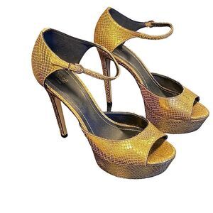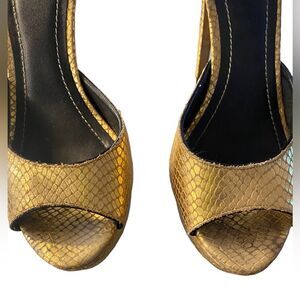 Stunning 5” platform heels, metallic gold lizard embossed leather shoes 8.5