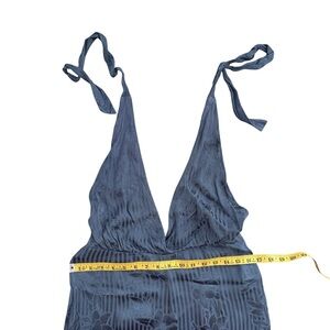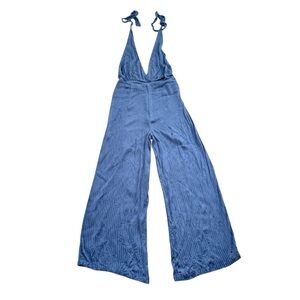 Stunning blue 70’s style floral open back flow halter jumpsuit size medium