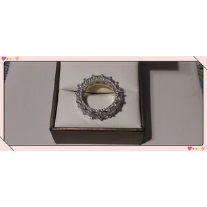 It is done in platinum over sterling silver for a lifetime of shine and durability. It is size 8.