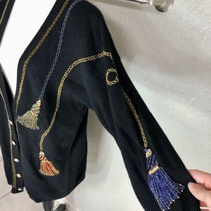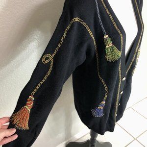 This sweater is absolutely timeless. The beaded tassels down the front and arms are in amazing shape and are sure to dazzle!