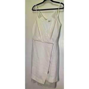 NWT has two small transfer stains (makeup)on shoulder strap not visible when wearing. A. Moss 100% textured silk Dress w/ Zipper Accent on skirt size 12. Inside is lined with sheer slip. Super classy moto inspired sexy dress.