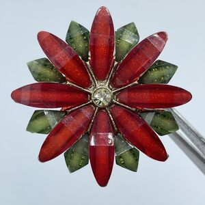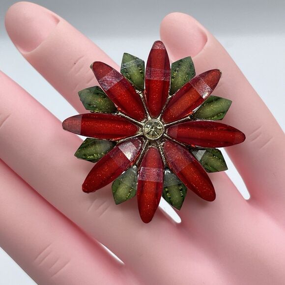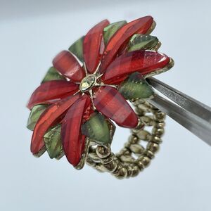 Stunning Acrylic Gold Tone Stretch Poinsettia Flower Boho Ring Statement Cute