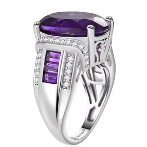 Stunning Amethyst and White Zircon 10.00 ctw Art and Deco Ring Sterling Silver Sz 7