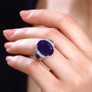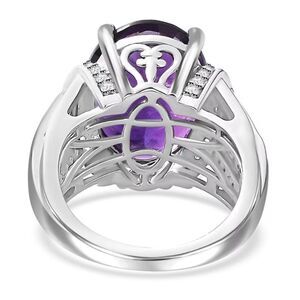 Stunning Amethyst and White Zircon 10.00 ctw Art and Deco Ring Sterling Silver 7