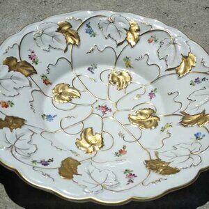 Stunning Antique von Schierholz Gold Gilded Leaves Relief Molded Porcelain Bowl