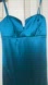 Satin aqua dress. Fabric is a little stretchy and is very soft. Slit up the side and touching in the back. Gorgeous for prom, wedding or gala. Fits women’s 6/8 or juniors 13. Bust is lightly padded.