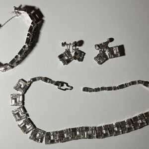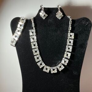 One of a kind, Crafted in the 1960’s with timeless appeal. Brilliant Rhinestone necklace, bracelet and screw-back earrings for the ultimate glamour look.