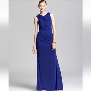 Stunning BCBG MAXAZRIA Simone Shoulder Drape Cut Out Gown XS Orient Blue