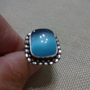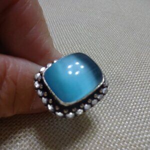 Stunning BLUE CATS EYE Handmade Sterling 925 Ring Size 7.25 #517C