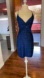 Make an unforgettable entrance in this gorgeous deep blue dress with a subtle sparkle finish. The flattering wrap-style front and fitted silhouette highlight your shape beautifully, while the spaghetti straps add a touch of elegance. Perfect for a night out, cocktail party, or special occasion.