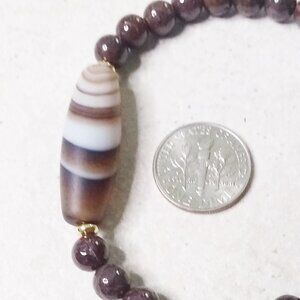 Stunning! Banded Agate & Brown Jasper Beaded Bracelet - 7" Wrist - Simply Chic!