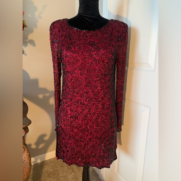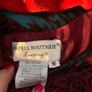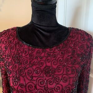 100% Silk with intricate swirled beading. Long sleeves add elegance. Ideal for special events.