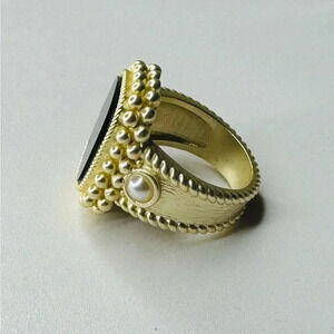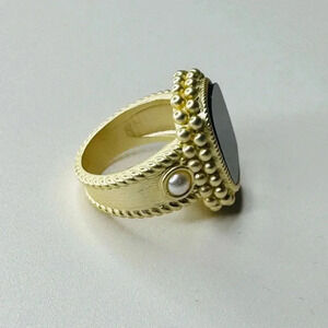 Stunning Black Onyx Stone Ring Set Muted Gold