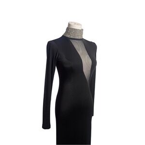 Stunning Black Sheer Panel Evening Gown – Preowned