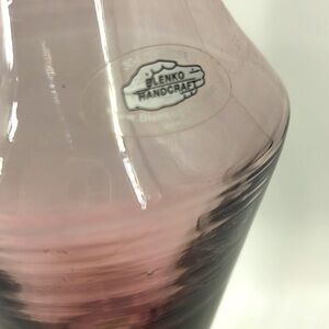 Own a true Blenko rarity: a hand-blown amethyst purple vase from the early 1970s experimental color trials, where molten glass was intentionally cooled in a controlled “water mist” technique to create the signature cloudy, water-damaged aesthetic—a deliberate design choice, not wear.